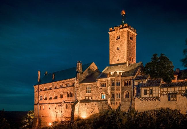 To monumentalne średniowieczne zamczysko pełniło wiele różnych funkcji w historii Niemiec, w tym jako miejsce pobytu Marcina Lutra gdzie dokonał tłumaczenia Nowego Testamentu na niemiecki.