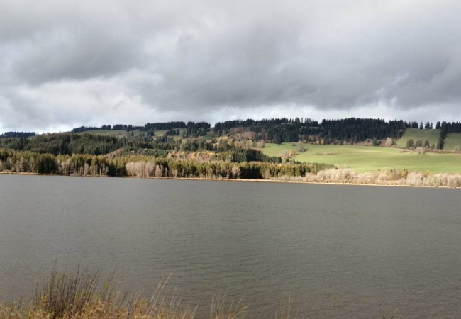 Woda w jeziorze jest czysta a wokół rozciągają się malownicze krajobrazy, góry i lasy.