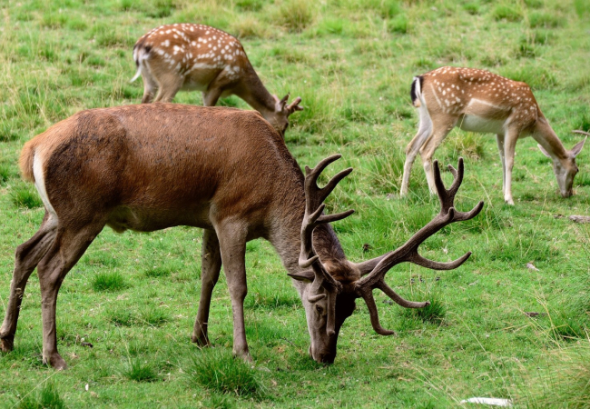 Odwiedzający park mogą zobaczyć szereg zwierząt, w tym jelenie, dziki, wilki, rysie, niedźwiedzie i ptaki drapieżne.