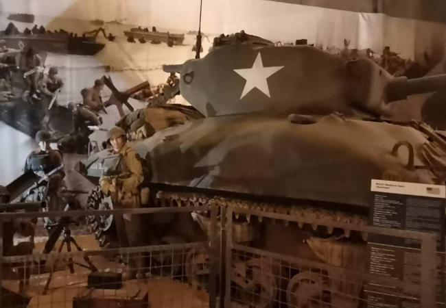 W muzeum znajdują się różne artefakty, dokumenty, zdjęcia, filmy i dioramy, które opowiadają historię lądowania D-Day i wyzwolenia Europy Zachodniej.